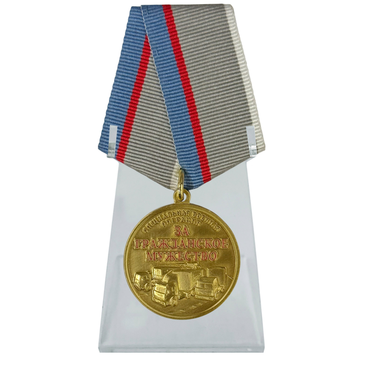 Медаль "За гражданское мужество" Участнику гуманитарных конвоев СВО на подставке №1000