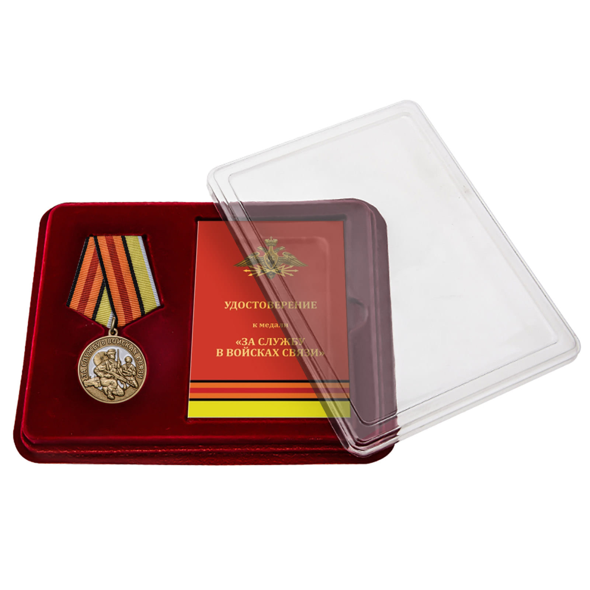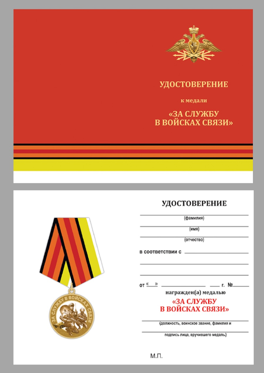 Купить медаль "За службу в Войсках связи" в наградном футляре с удостоверением можно в Военпро, с удобной доставкой по всей РФ.