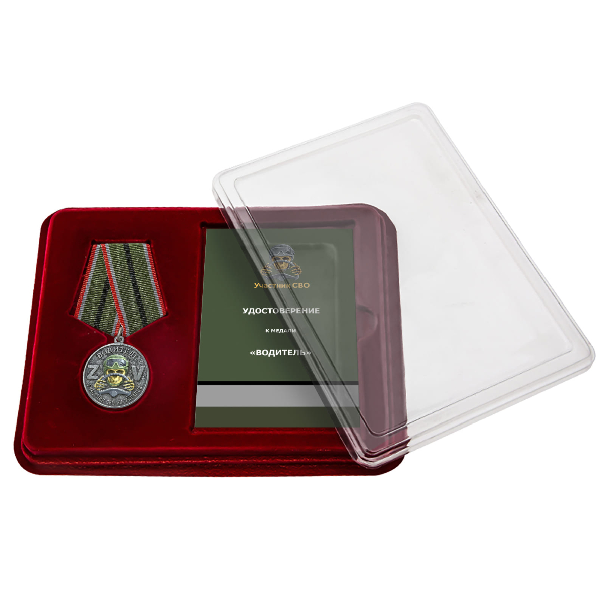 Медаль "За службу" водитель – участник СВО в футляре из флока