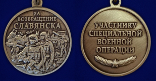 Купить медаль «За возвращение Славянска»   из латуни высокого качества в военторге Военпро по выгодной цене с доставкой по Москве и всей России.