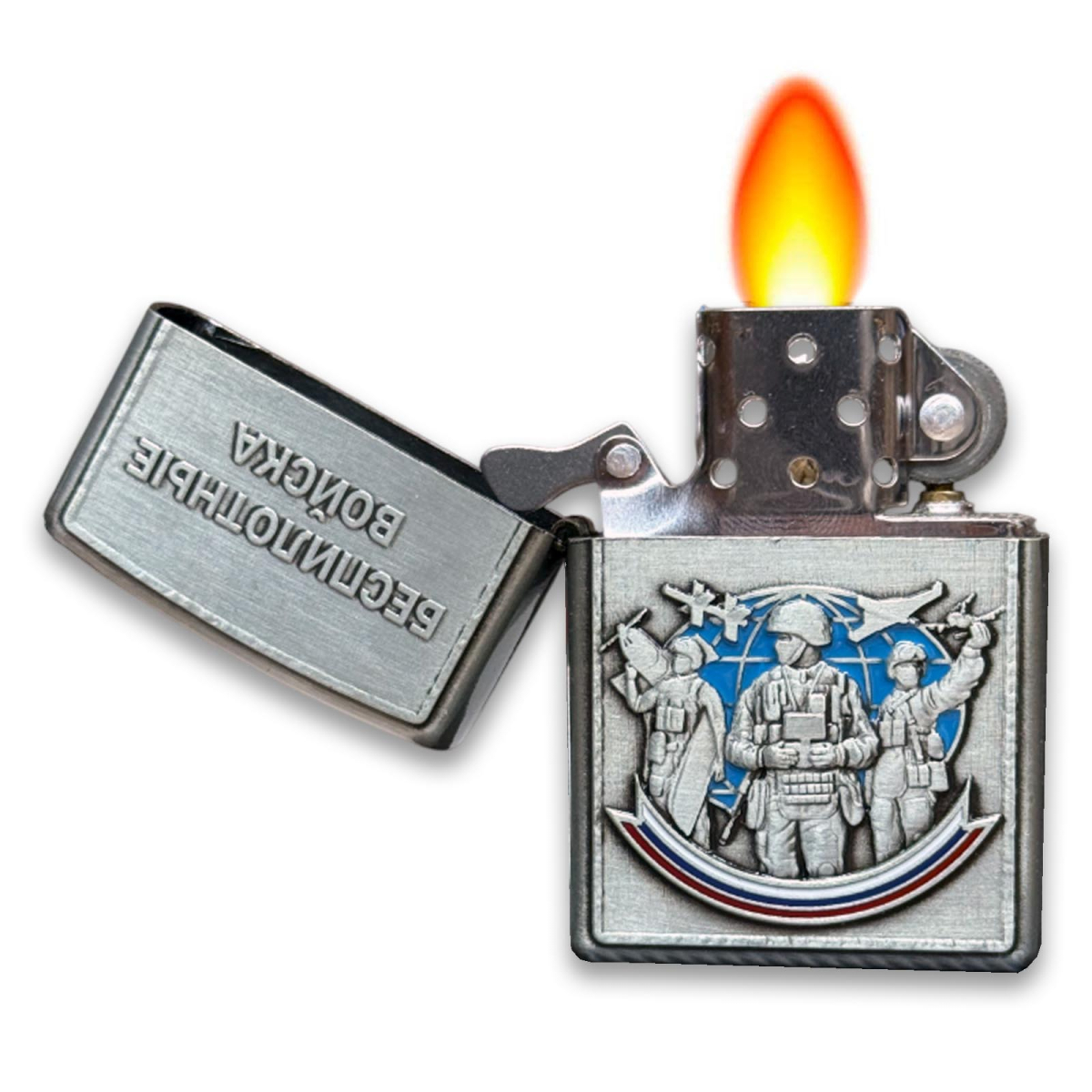 Зажигалка выполнена в классическом стиле Zippo, имеет прочный корпус из нержавеющей стали и надежный кремниевый механизм поджига. Работает на обычном бензине для зажигалок.Подходит для повседневного использования, коллекционирования или в качестве памятного подарка военнослужащим, ветеранам и патриотам России.