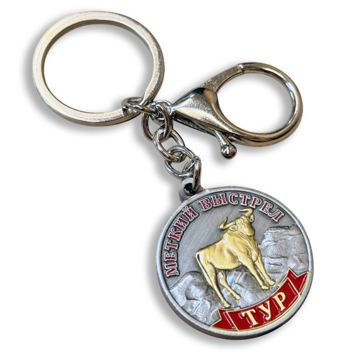 Брелок-медаль с эффектным изображением горного тура и выразительной надписью «Меткий выстрел. Тур». Этот аксессуар станет не только практичной деталью для ключей, но и стильным элементом образа, который привлечёт внимание окружающих.