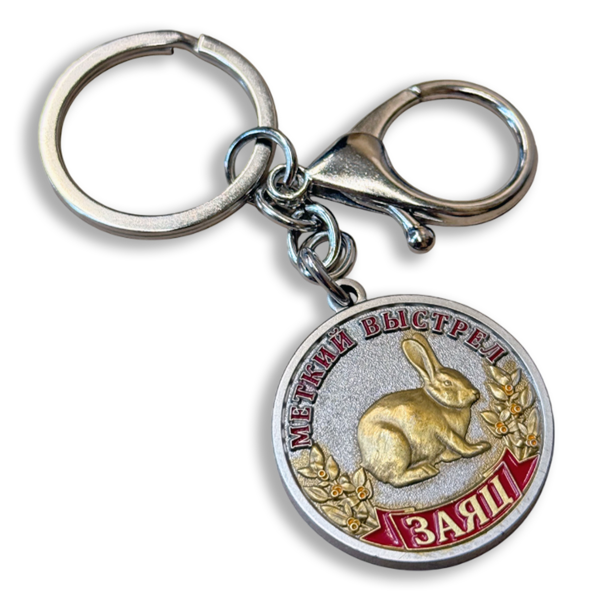 Ищете оригинальный и запоминающийся подарок для любителя охоты, активного отдыха или просто ценителя необычных аксессуаров? Представляем вам брелок-медаль с изображением зайца — сочетание практичности и юмора в одном изделии!
