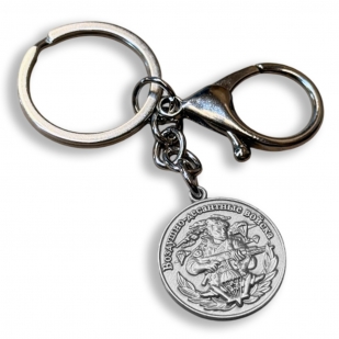 • Форма: круглая медаль, прикреплённая к кольцу для ключей;