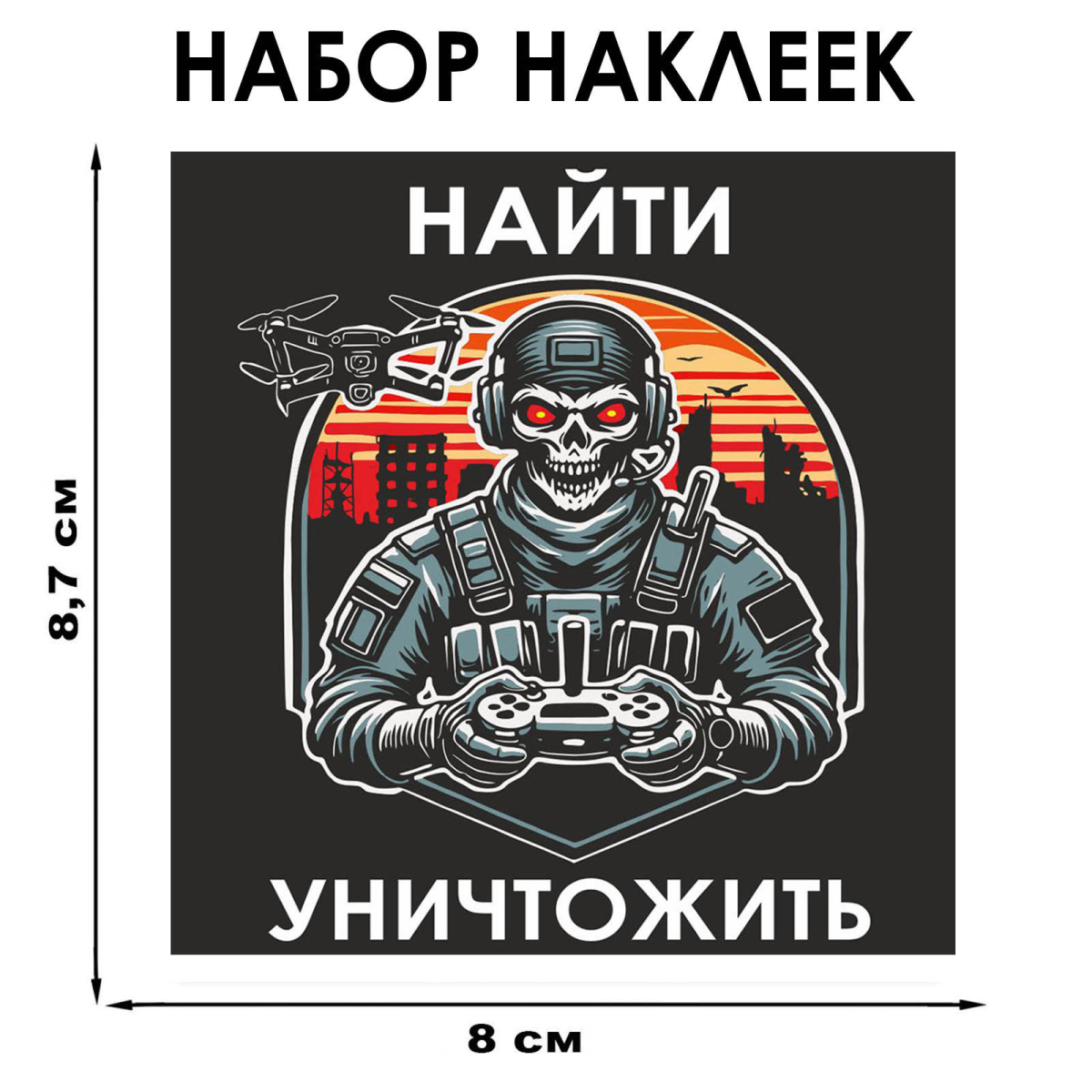 Набор наклеек "Найти – уничтожить" Дронармия (8.7х8 см)