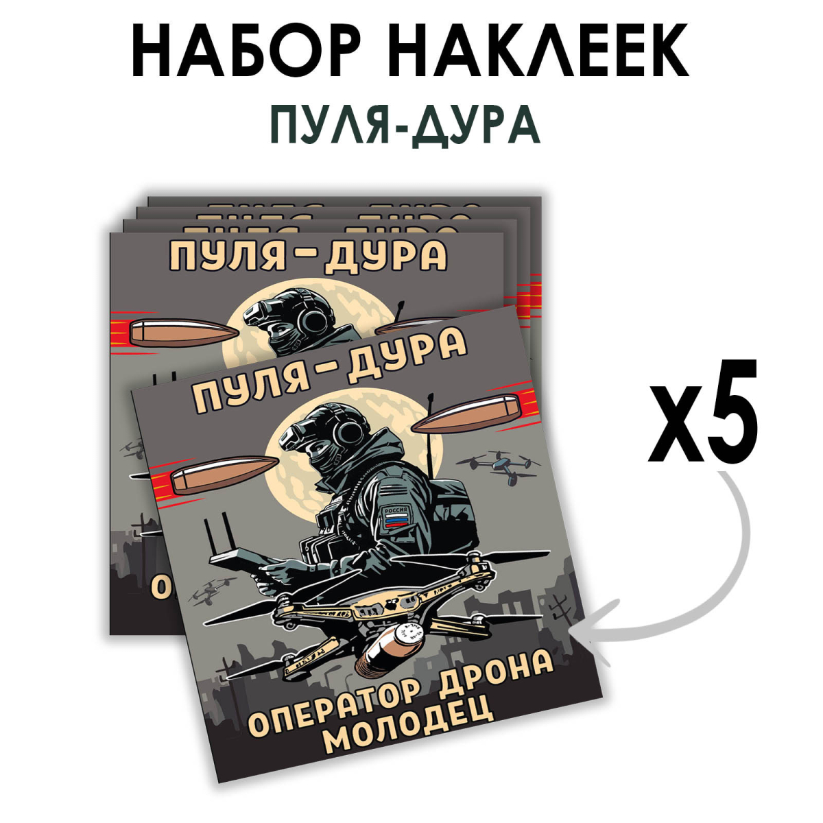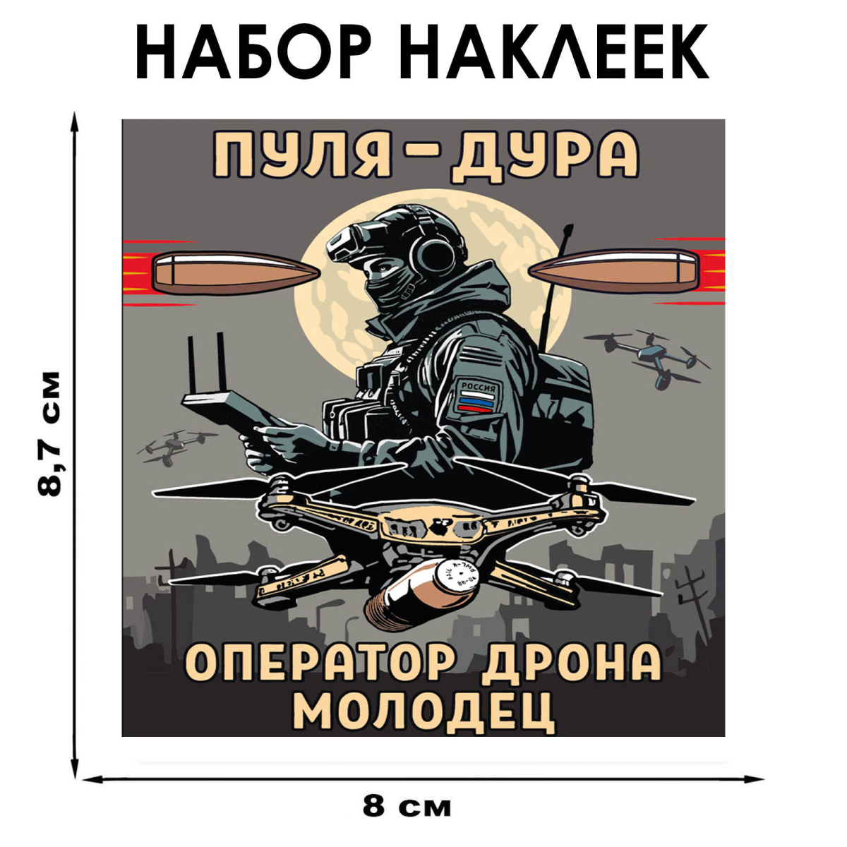 Набор наклеек "Пуля – дура, оператор дрона – молодец" (8.7х8 см)