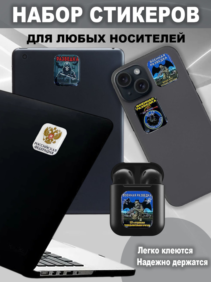 Универсальный набор ярких стикеров  "Военная разведка" — отличное решение для украшения личных вещей и создания индивидуального стиля. Каждый стикер покрыт прозрачным верхним слоем из полиуретановой смолы, что придаёт изображению эффект объёма, защищает от влаги, выцветания и механических повреждений. Стикеры легко клеятся на телефон, ноутбук, планшет, блокнот или любую гладкую поверхность, держатся прочно и не теряют яркости со временем.
