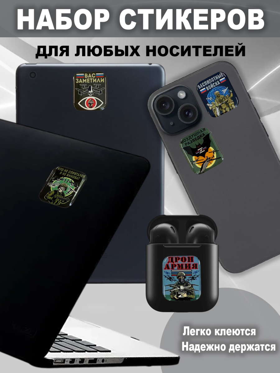 Универсальный набор ярких стикеров “Беспилотные войска” — отличное решение для украшения личных вещей и создания индивидуального стиля. Каждый стикер покрыт прозрачным верхним слоем из полиуретановой смолы, что придаёт изображению эффект объёма, защищает от влаги, выцветания и механических повреждений. Стикеры легко клеятся на телефон, ноутбук, планшет, блокнот или любую гладкую поверхность, держатся прочно и не теряют яркости со временем.