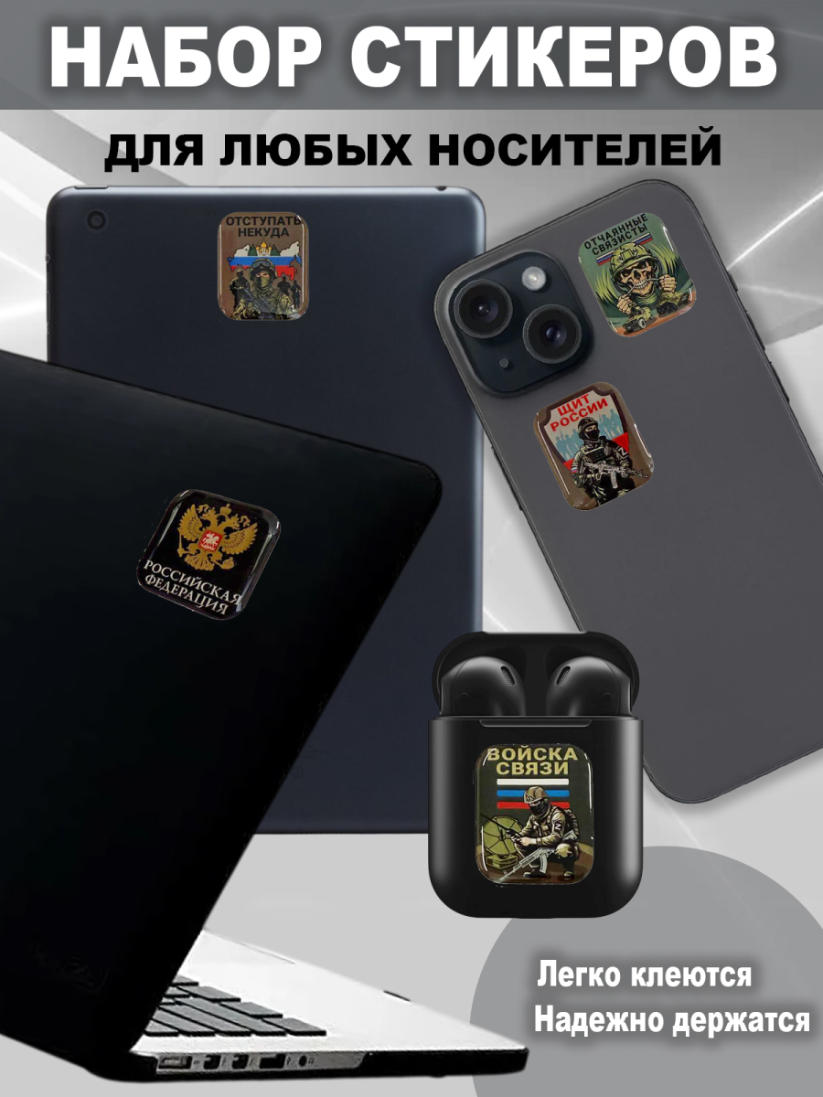 Универсальный набор ярких стикеров  с символикой Войск связи — отличное решение для украшения личных вещей и создания индивидуального стиля. Каждый стикер покрыт прозрачным верхним слоем из полиуретановой смолы, что придаёт изображению эффект объёма, защищает от влаги, выцветания и механических повреждений. Стикеры легко клеятся на телефон, ноутбук, планшет, блокнот или любую гладкую поверхность, держатся прочно и не теряют яркости со временем.