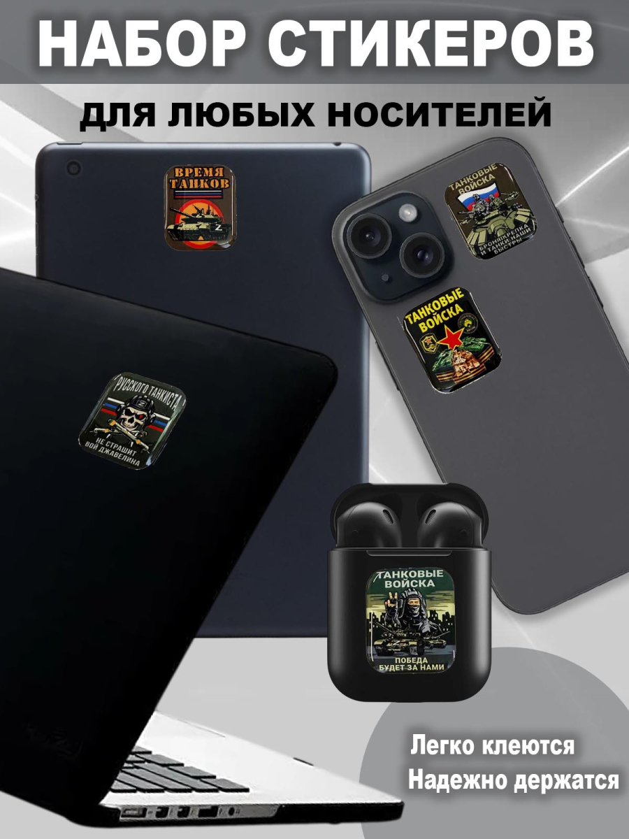 Универсальный набор ярких стикеров “Танковые войска” — отличное решение для украшения личных вещей и создания индивидуального стиля. Каждый стикер покрыт прозрачным верхним слоем из полиуретановой смолы, что придаёт изображению эффект объёма, защищает от влаги, выцветания и механических повреждений. Стикеры легко клеятся на телефон, ноутбук, планшет, блокнот или любую гладкую поверхность, держатся прочно и не теряют яркости со временем.