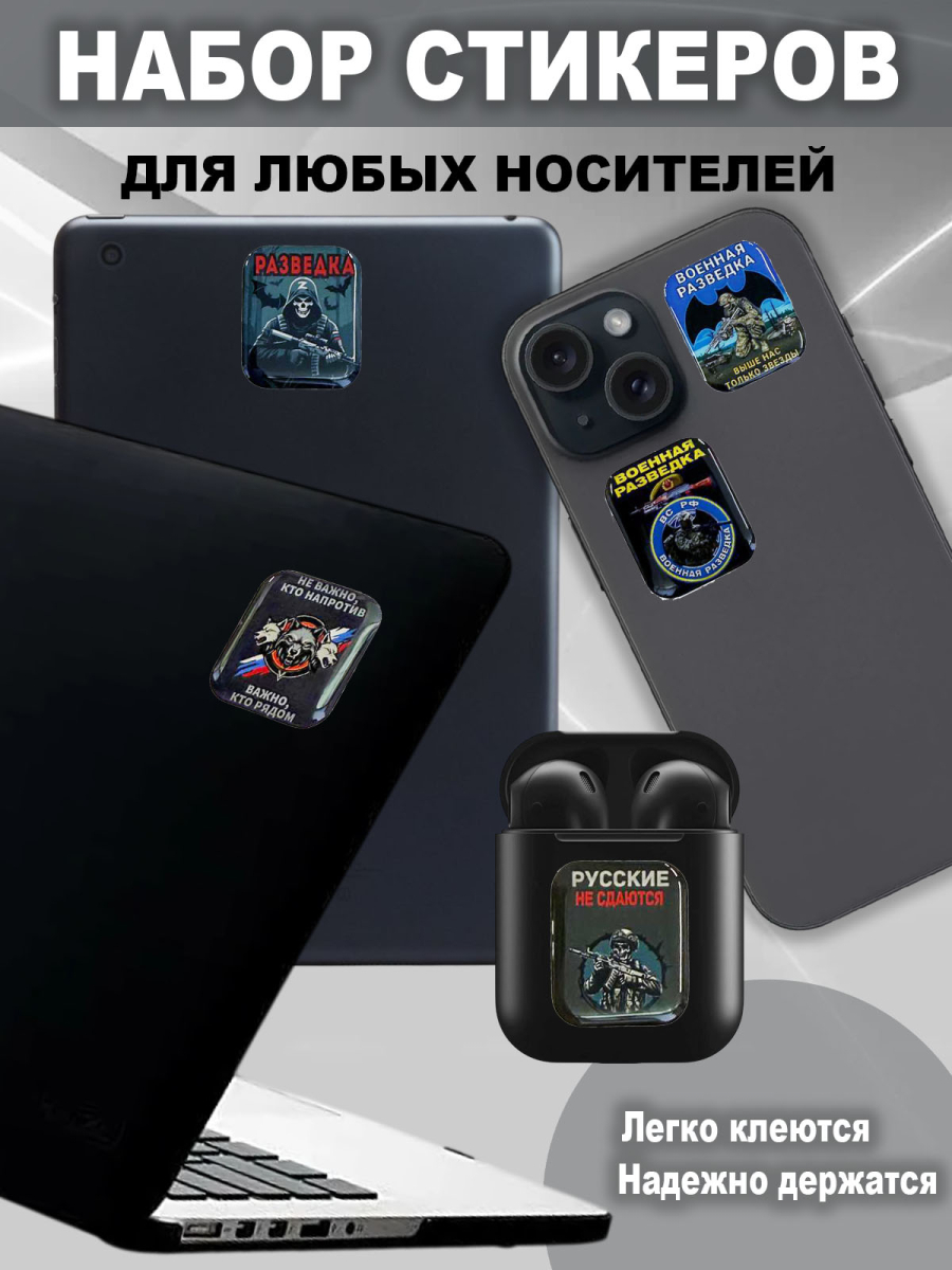 Универсальный набор ярких стикеров  "Военная разведка" — отличное решение для украшения личных вещей и создания индивидуального стиля. Каждый стикер покрыт прозрачным верхним слоем из полиуретановой смолы, что придаёт изображению эффект объёма, защищает от влаги, выцветания и механических повреждений. Стикеры легко клеятся на телефон, ноутбук, планшет, блокнот или любую гладкую поверхность, держатся прочно и не теряют яркости со временем.