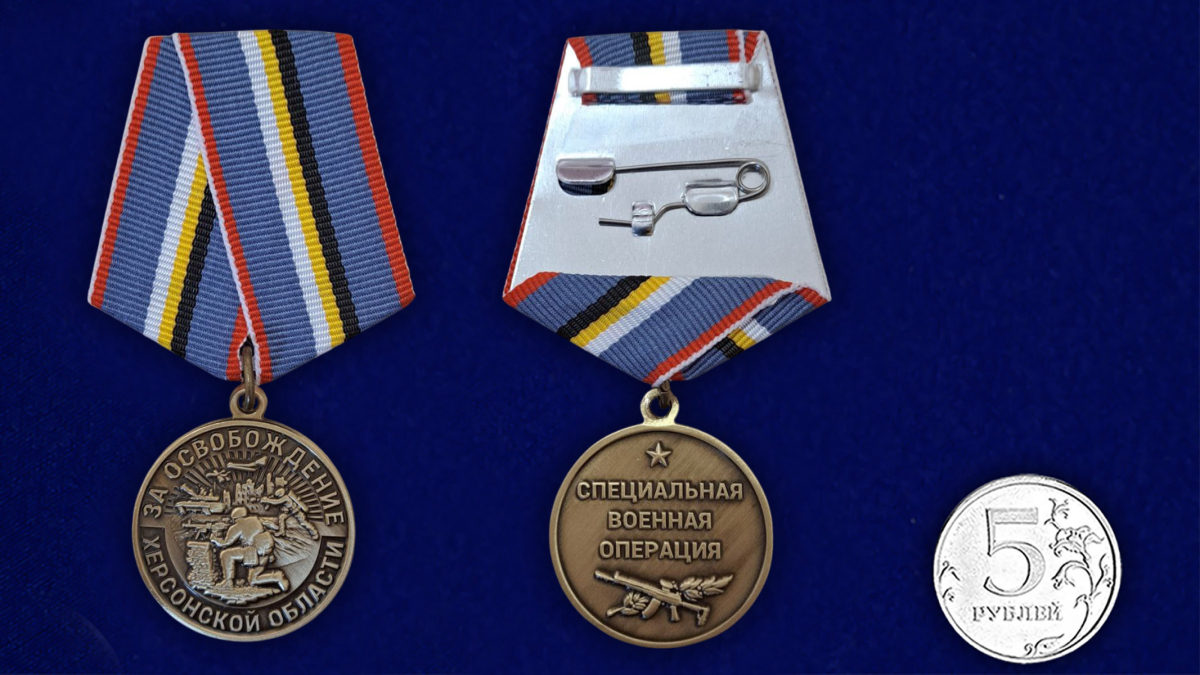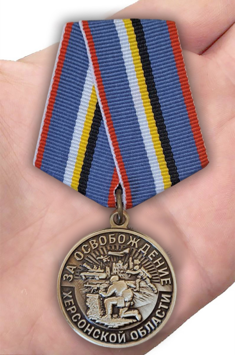 Купить медаль «За освобождение Херсонской области»  из латуни высокого качества в военторге Военпро по выгодной цене с доставкой по Москве и всей России.