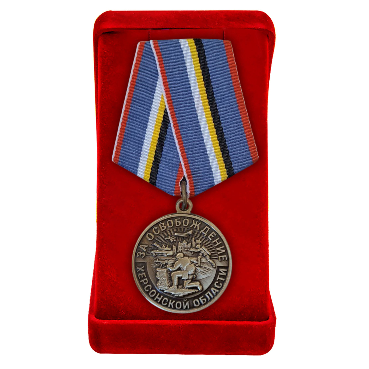 Купить медаль «За освобождение Херсонской области»  из латуни высокого качества в военторге Военпро по выгодной цене с доставкой по Москве и всей России.