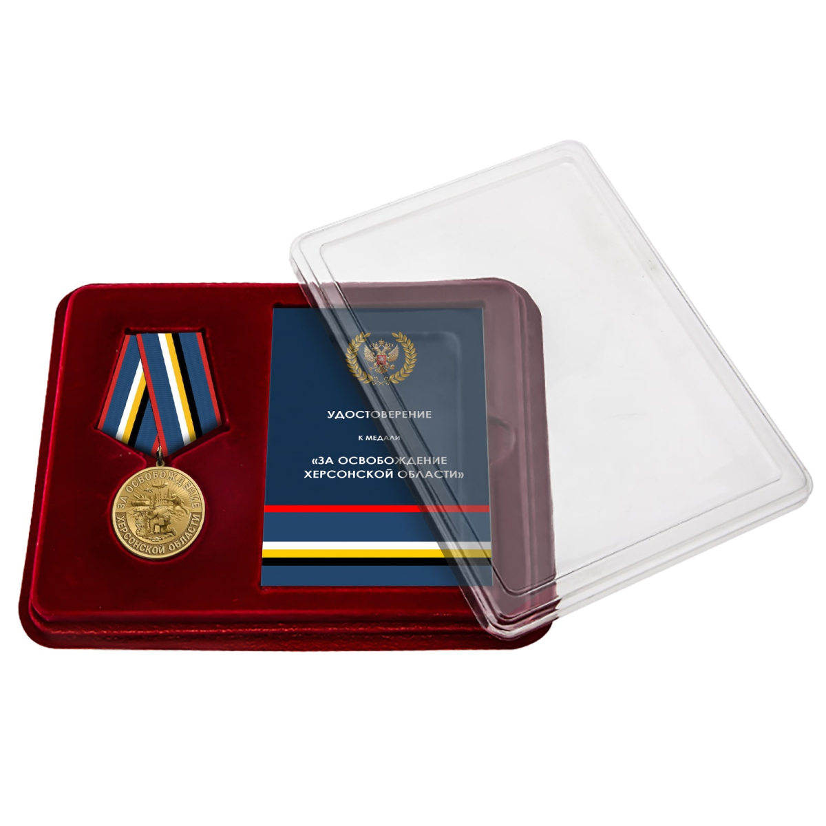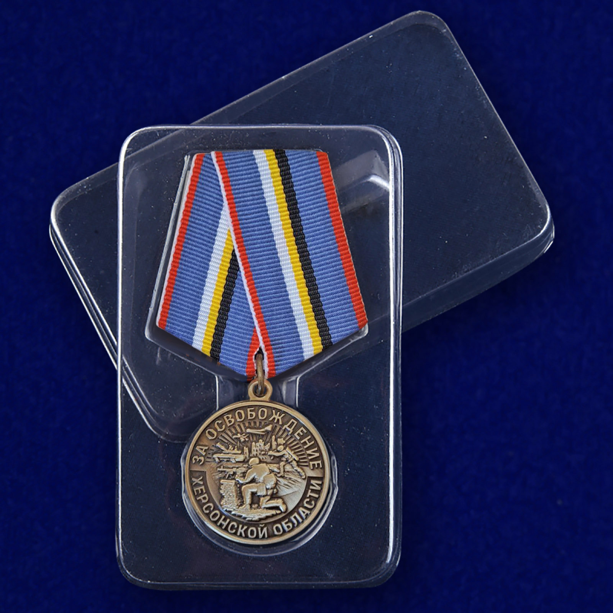 Купить памятную медаль "За освобождение Херсонской области" из латуни высокого качества в военторге Военпро по выгодной цене с доставкой по Москве и всей России.