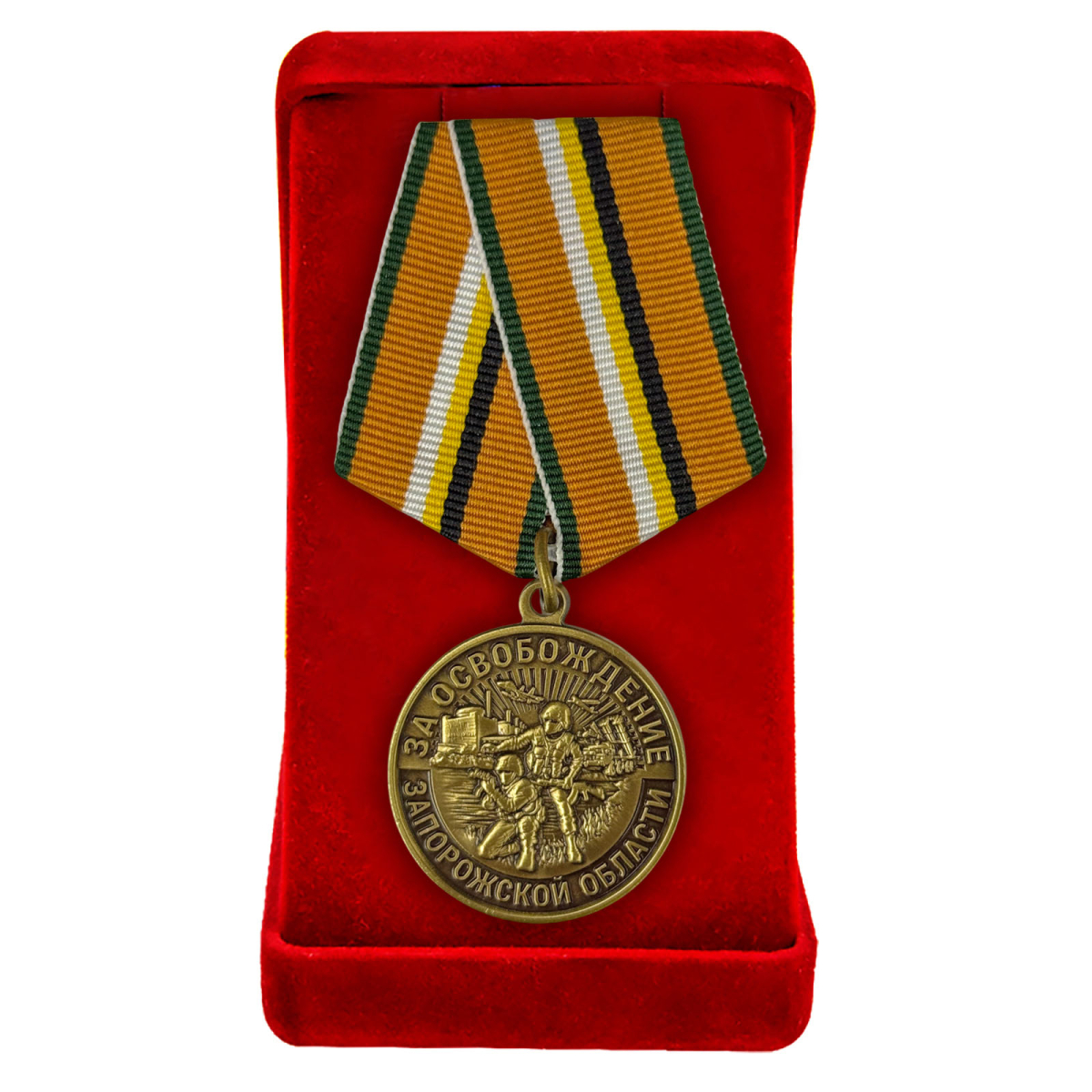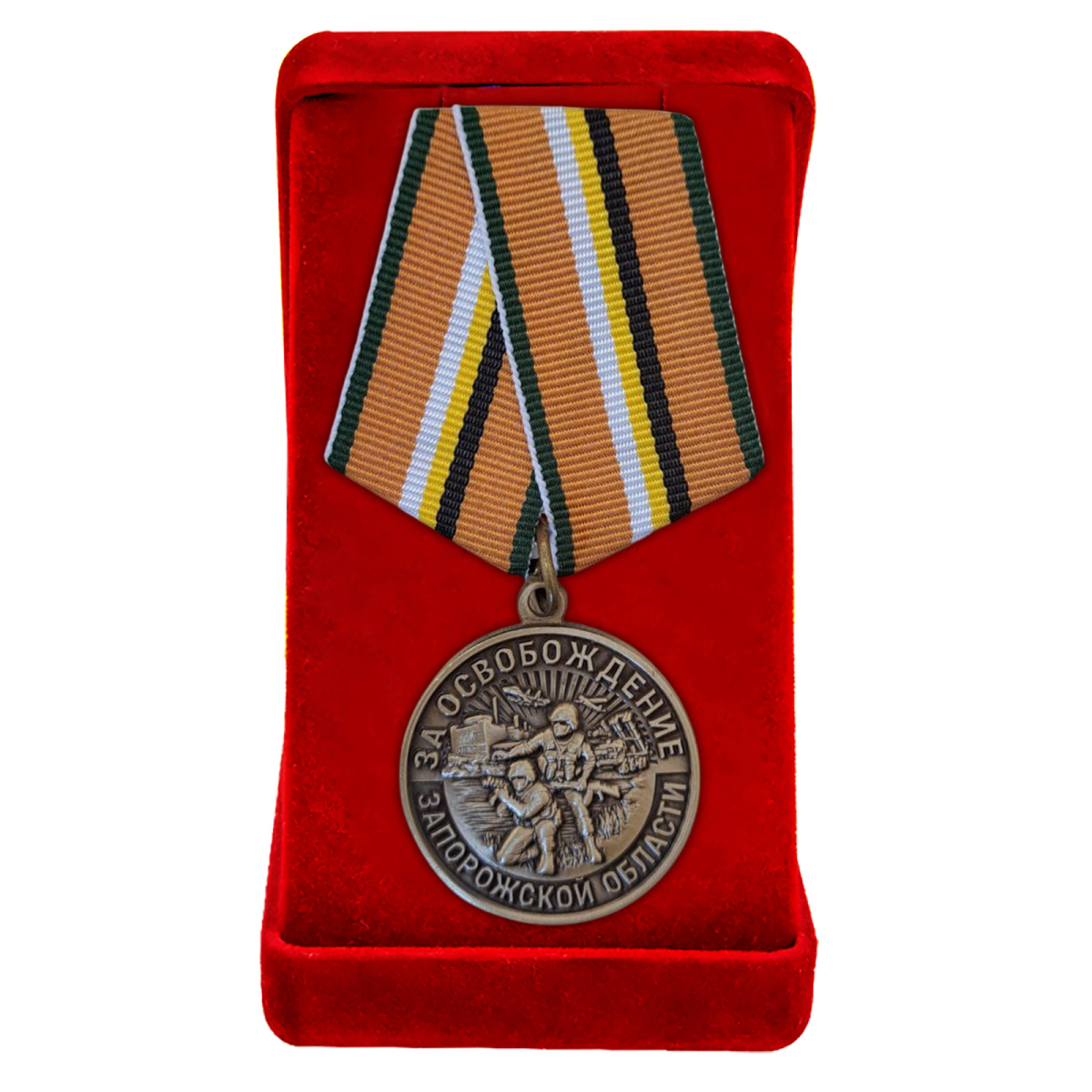 Купить медаль «За освобождение Запорожской области» в красивом бархатистом футляре из латуни высокого качества в военторге Военпро по выгодной цене с доставкой по Москве и всей России.