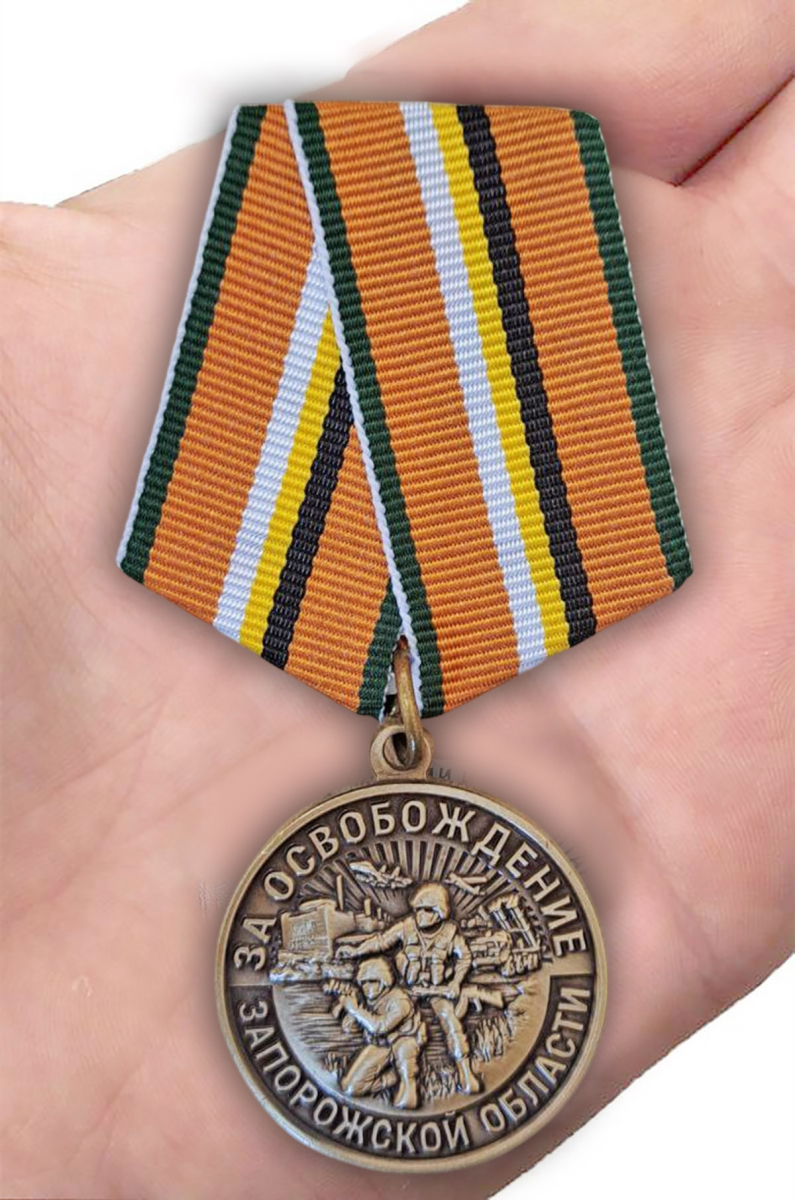 Купить медаль «За освобождение Запорожской области» на подставке из латуни высокого качества в военторге Военпро по выгодной цене с доставкой по Москве и всей России.