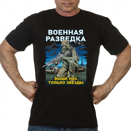 Новинка. Черная футболка Военная разведка "Выше нас только звезды"
