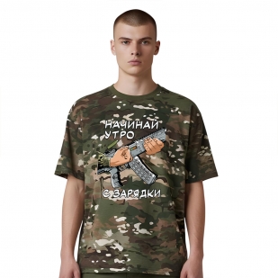 Камуфляжная футболка "Начинай утро с зарядки" (Мультикам)
