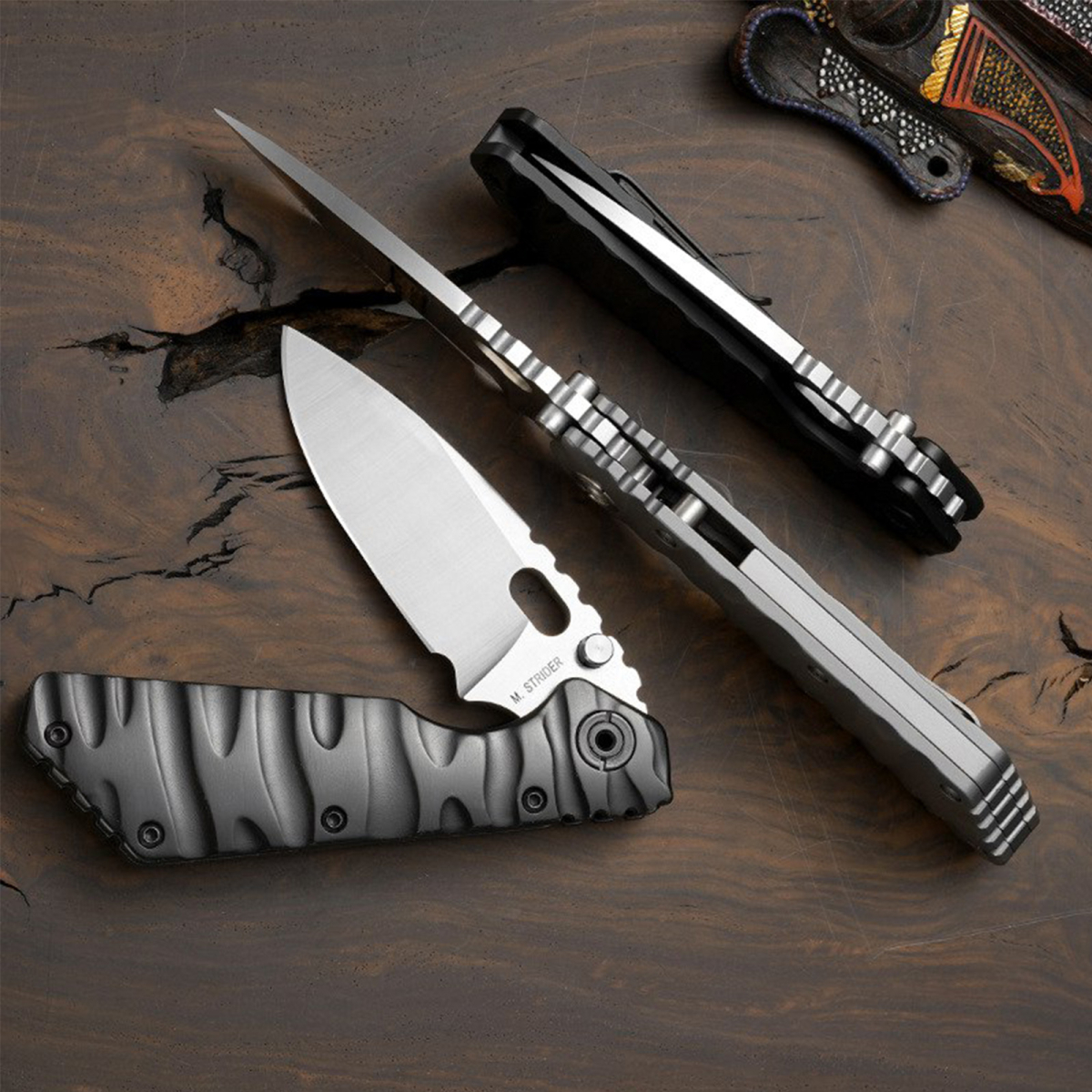 Рукоять изготовлена из Titanium TC4 (сплав титана, алюминия и ванадия), известного своей лёгкостью и высоким запасом прочности. Фактурная поверхность обеспечивает надёжный хват даже влажной рукой, а нож в целом ощущается монолитным и сбалансированным.