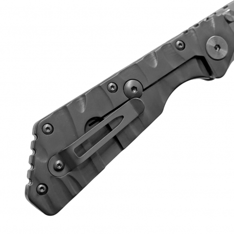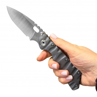 Рукоять изготовлена из Titanium TC4 (сплав титана, алюминия и ванадия), известного своей лёгкостью и высоким запасом прочности. Фактурная поверхность обеспечивает надёжный хват даже влажной рукой, а нож в целом ощущается монолитным и сбалансированным.