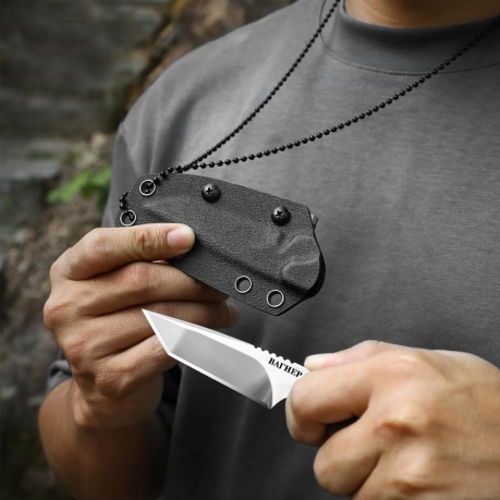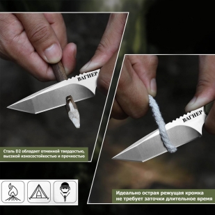 Данный компактный нож с фиксированным лезвием поставляется в комплекте с ножнами для ношения на шее, что делает его идеальным как для гражданских лиц – для пеших прогулок, кемпинга, охоты и рыбалки, самообороны, так и для военнослужащих и сотрудников силовых структур при выполнении служебных и боевых задач.