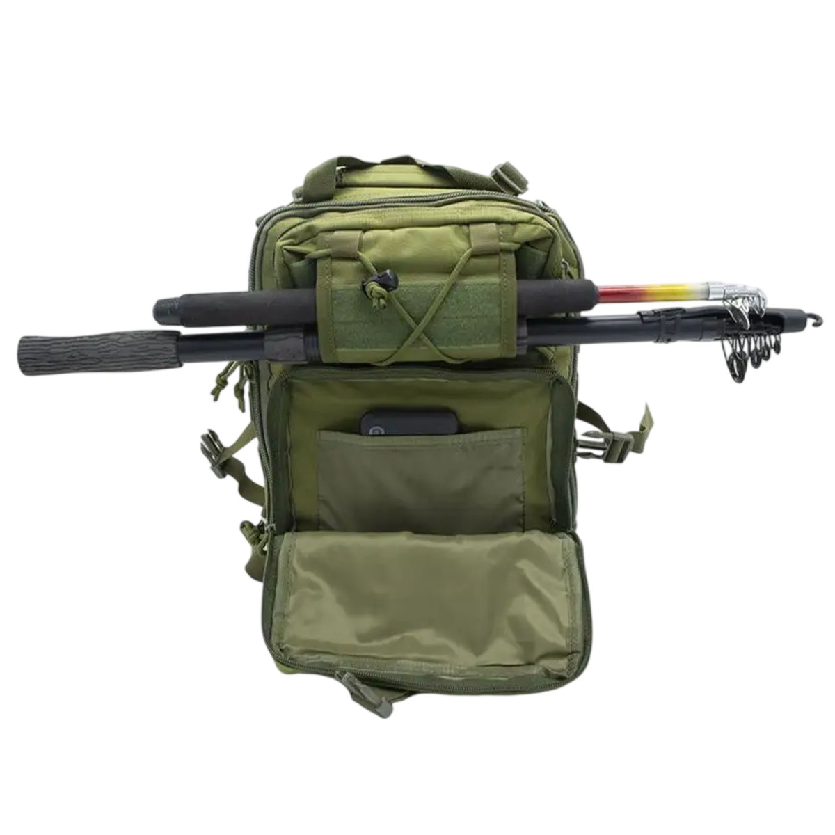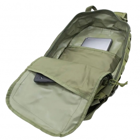 На фронтальной панели расположен дополнительный модульный карман со стропами MOLLE и эластичной шнуровкой для фиксации дополнительного снаряжения. Боковые поверхности также оборудованы системой MOLLE, что позволяет закреплять дополнительные подсумки, карабины или другое тактическое оборудование.