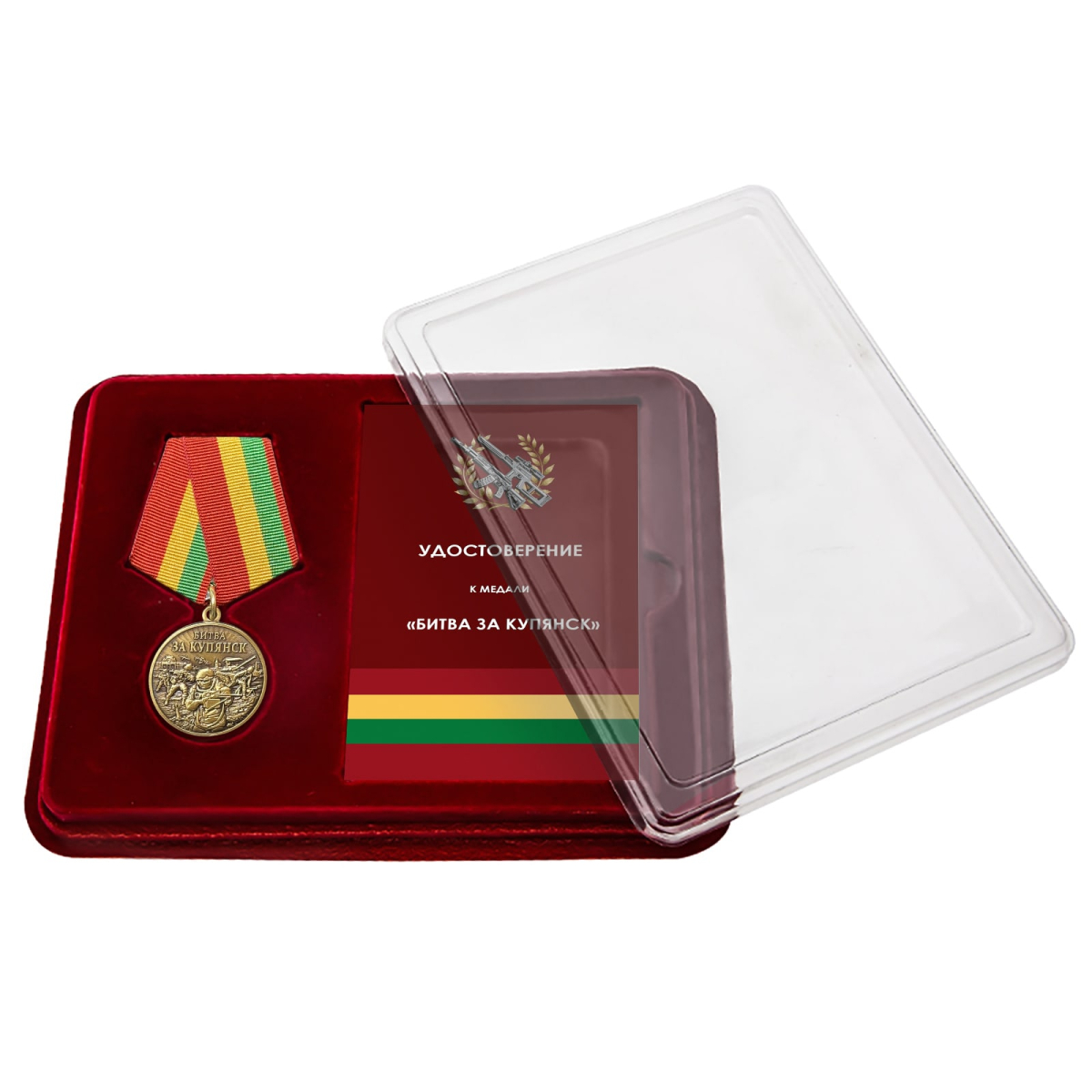 Купить медаль «Битва за Купянск» в футляре с прозрачной крышкой из латуни высокого качества в военторге Военпро по выгодной цене с доставкой по Москве и всей России.