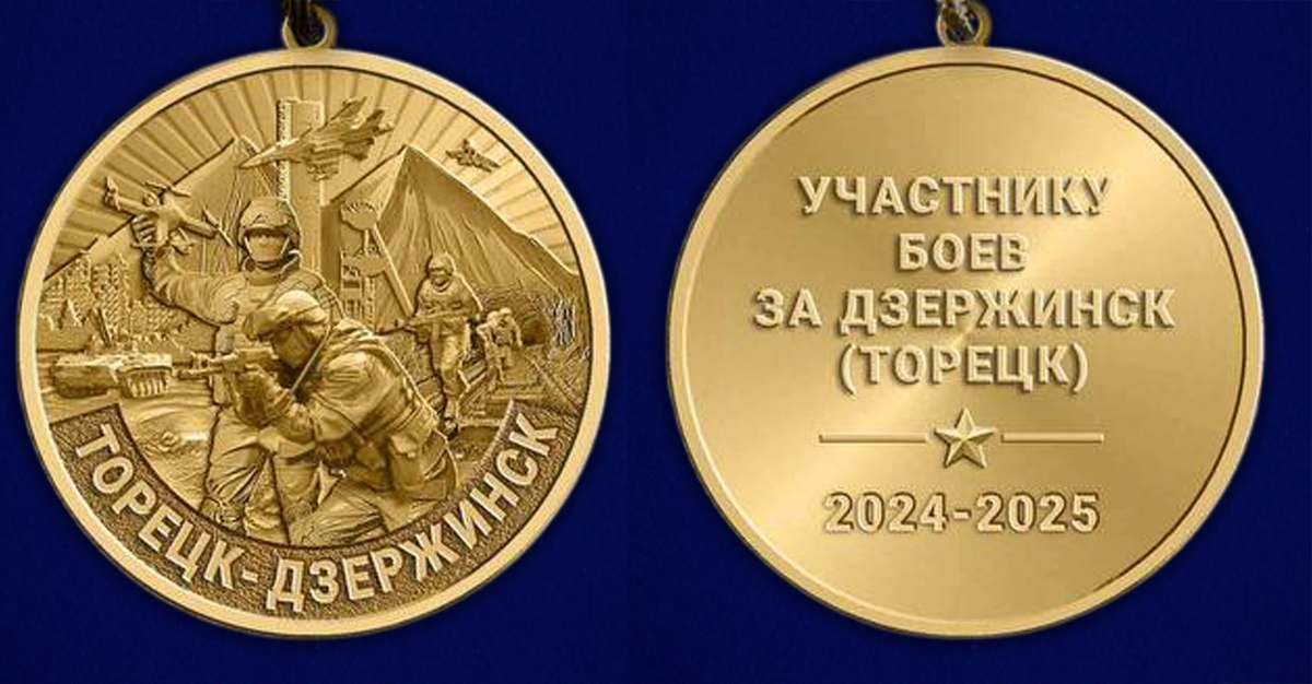 Купить памятную медаль участнику боёв "Торецк-Дзержинск"  из латуни высокого качества в военторге Военпро по выгодной цене с доставкой по Москве и всей России.