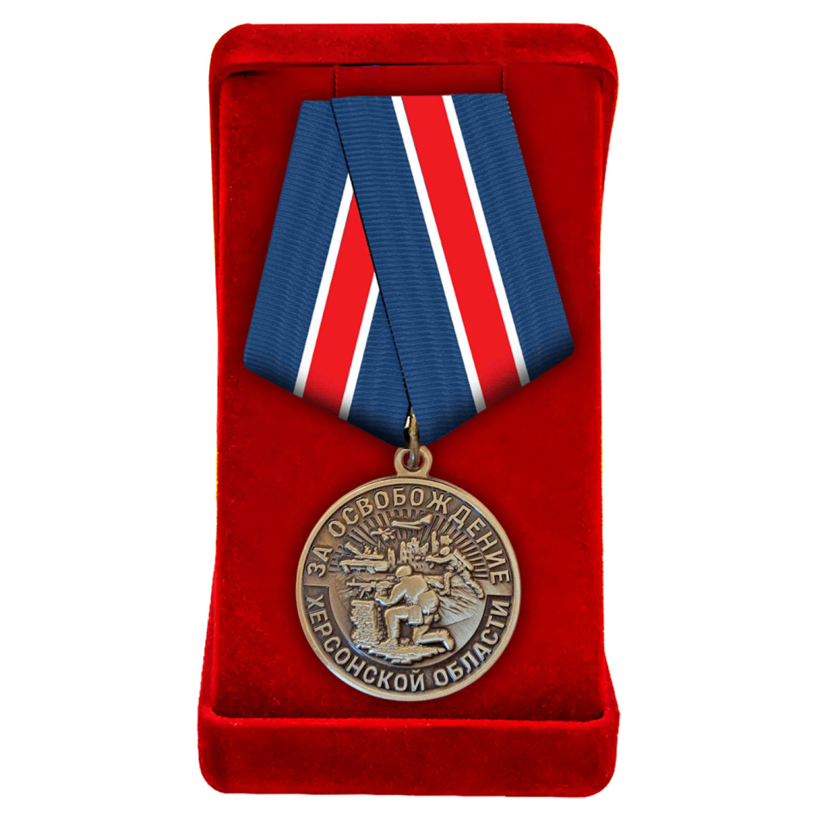 Купить медаль «За освобождение Херсонской области»  из латуни высокого качества в военторге Военпро по выгодной цене с доставкой по Москве и всей России.