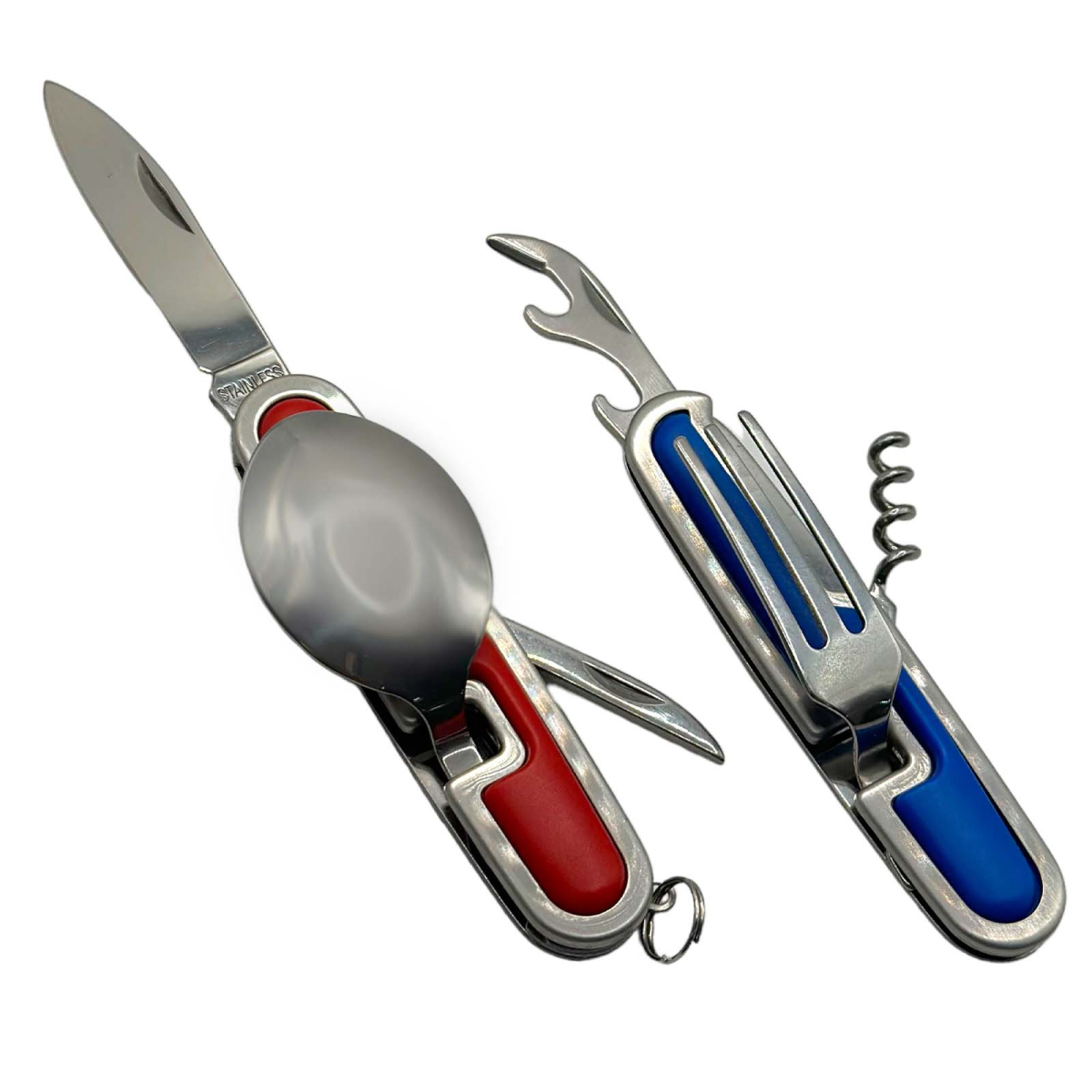 • Функции: нож, вилка, ложка, открывашка для бутылок, штопор, консервный нож