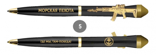 Подарочная ручка Морская пехота "Где мы, там – Победа!" с автоматом в футляре (Наконечник корпуса выполнен в форме боеголовки ракеты «Орешник», подчёркивая патриотичный характер ручки.)