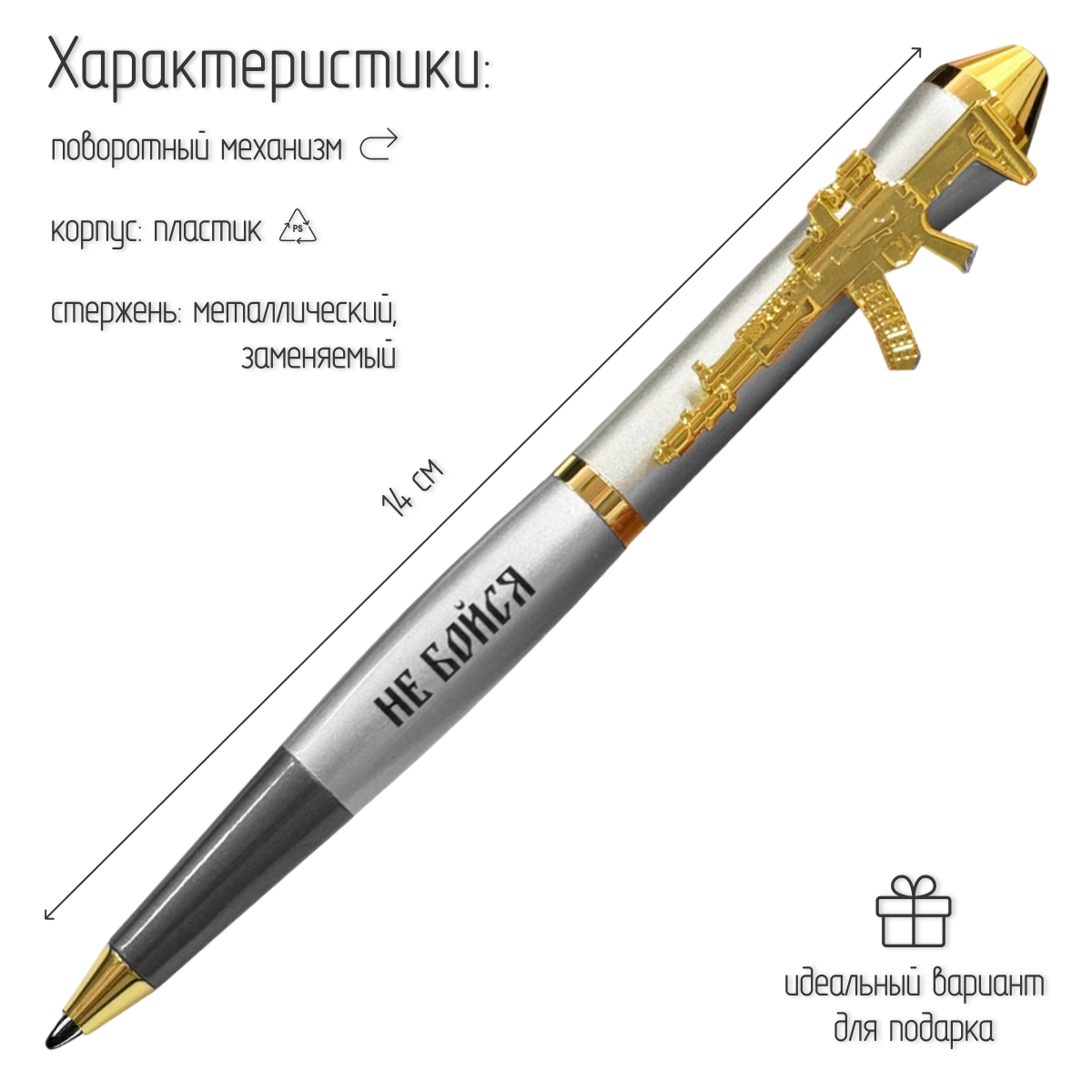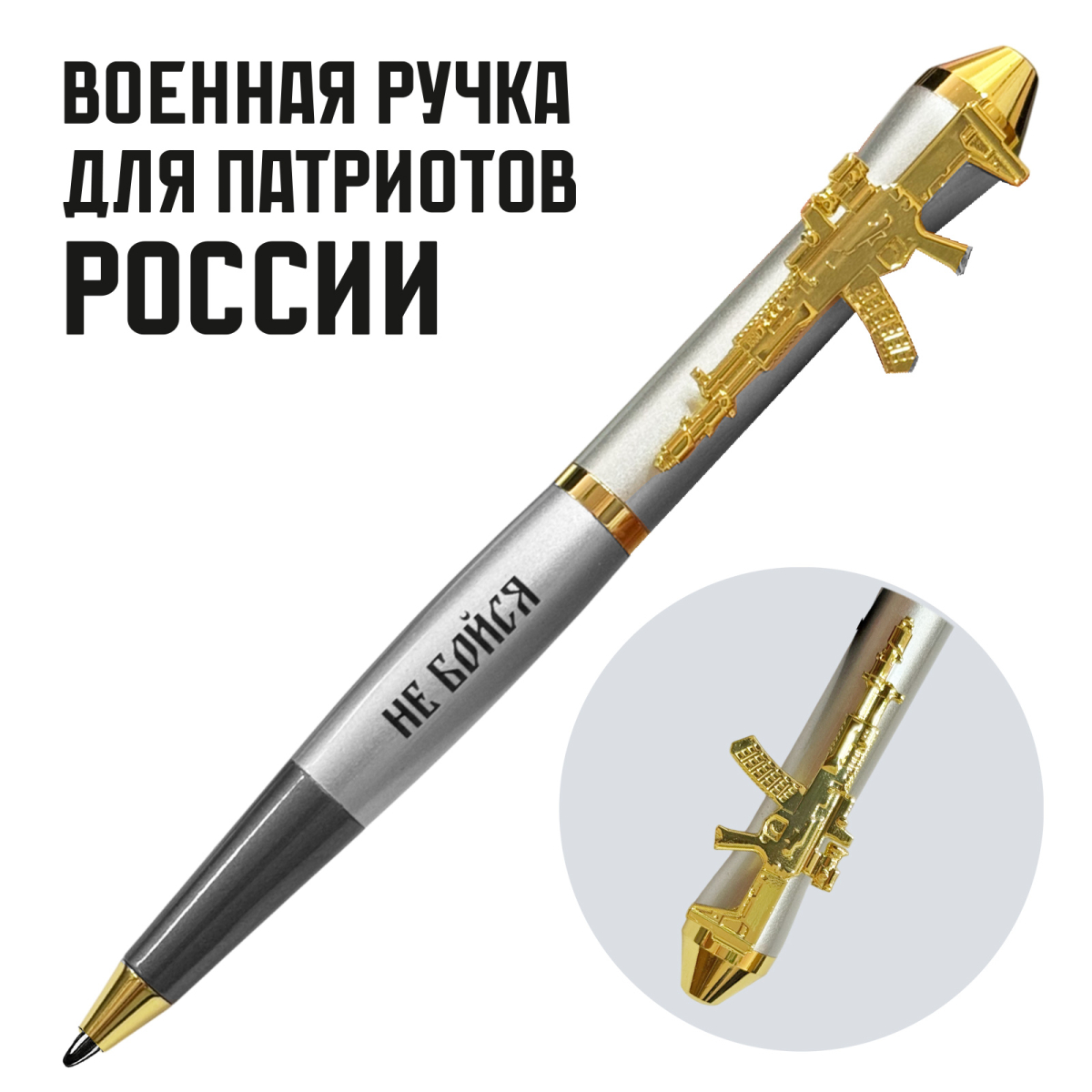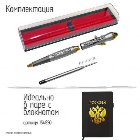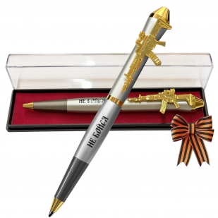 Подарочная ручка "Не бойся, ибо я с тобой" с автоматом в футляре (Наконечник корпуса выполнен в форме боеголовки ракеты «Орешник», подчёркивая патриотичный характер ручки.) №146