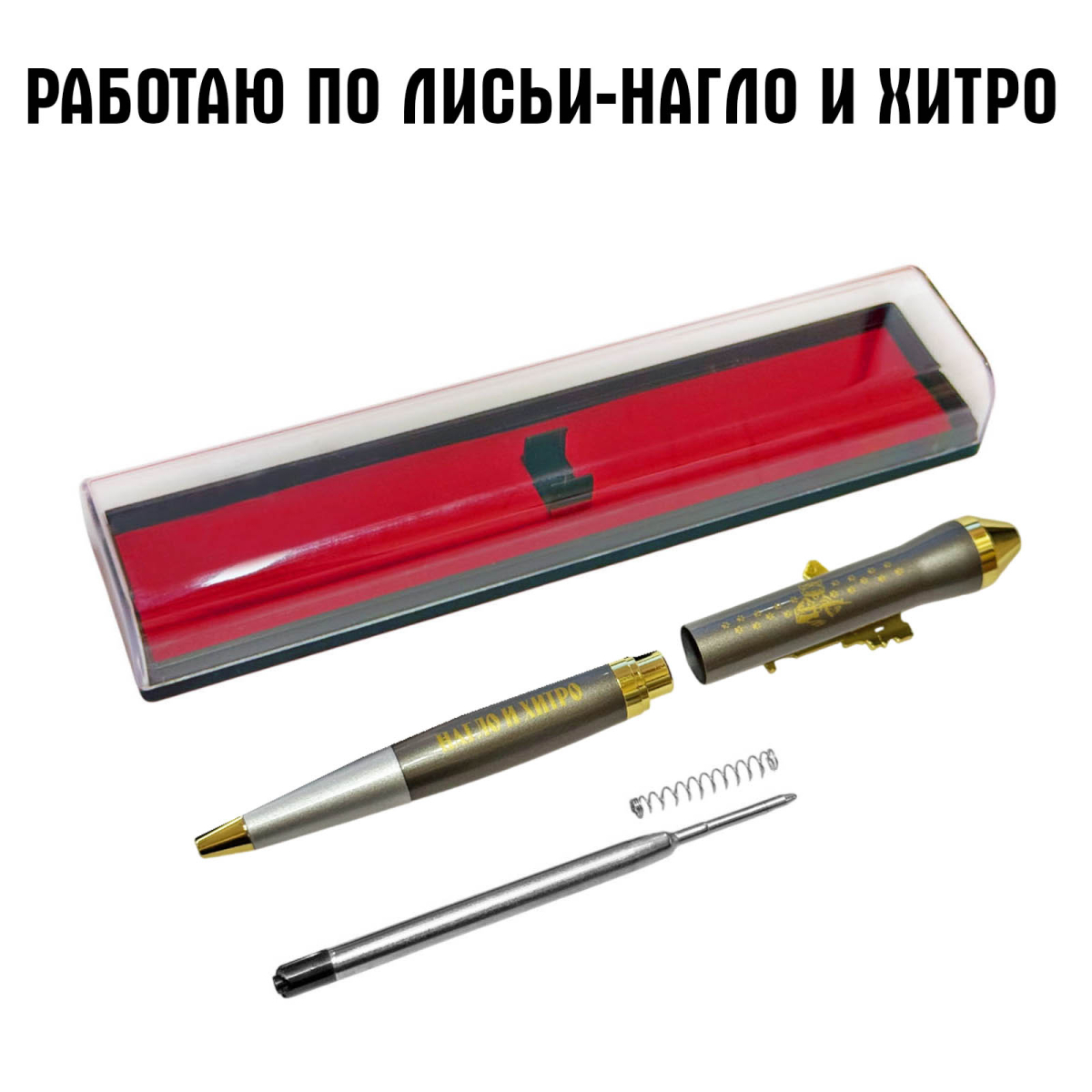 Купить подарочную ручку "Работаю по лисьи, нагло и хитро" можно в Военпро, с удобной доставкой по всей РФ.