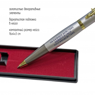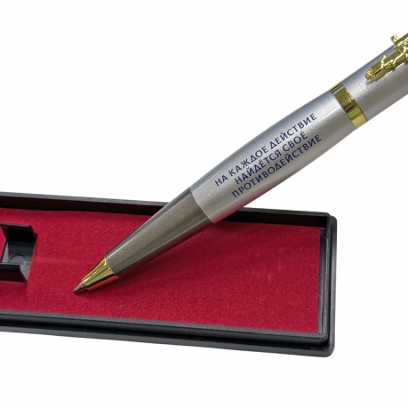 Подарочная ручка РЭБ "На каждое действие найдется свое противодействие" с автоматом в футляре
