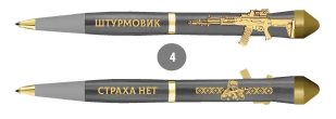 Подарочная ручка Штурмовик "Страха нет" с автоматом в футляре (Наконечник корпуса выполнен в форме боеголовки ракеты «Орешник», подчёркивая патриотичный характер ручки.)