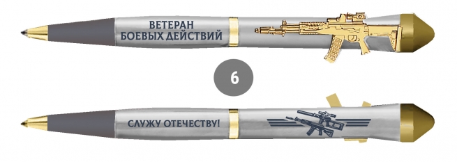 Подарочная ручка "Служу Отечеству!" Ветеран боевых действий с автоматом в футляре (Наконечник корпуса выполнен в форме боеголовки ракеты «Орешник», подчёркивая патриотичный характер ручки.)
