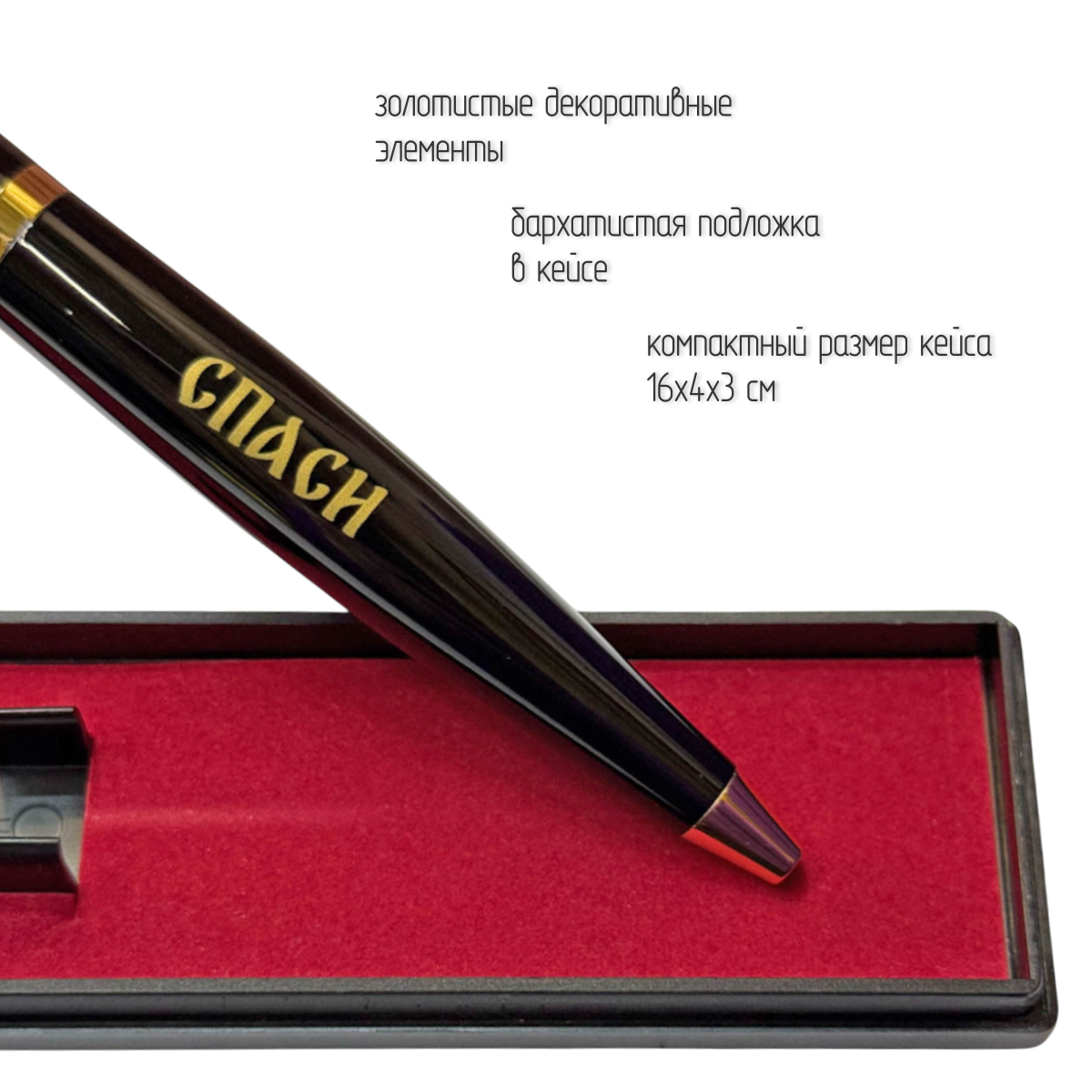 Подарочная ручка "Спаси и сохрани" в футляре (Наконечник корпуса выполнен в форме боеголовки ракеты «Орешник», подчёркивая патриотичный характер ручки.) №65