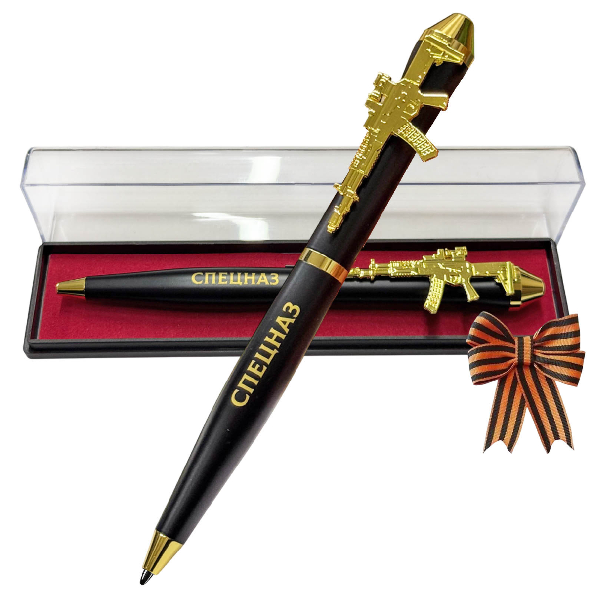 Подарочная ручка Спецназ "Любая задача в любое время" с автоматом в футляре