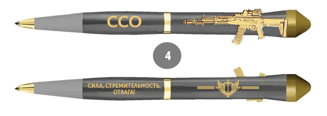 Подарочная ручка ССО "Сила, стремительность, отвага!" с автоматом в футляре (Наконечник корпуса выполнен в форме боеголовки ракеты «Орешник», подчёркивая патриотичный характер ручки.)