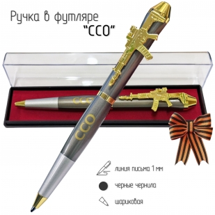 Подарочная ручка ССО "Сила, стремительность, отвага!" с автоматом в футляре