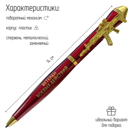 Купить подарочную ручку Ветеран боевых действий можно в Военпро, с удобной доставкой по всей РФ.