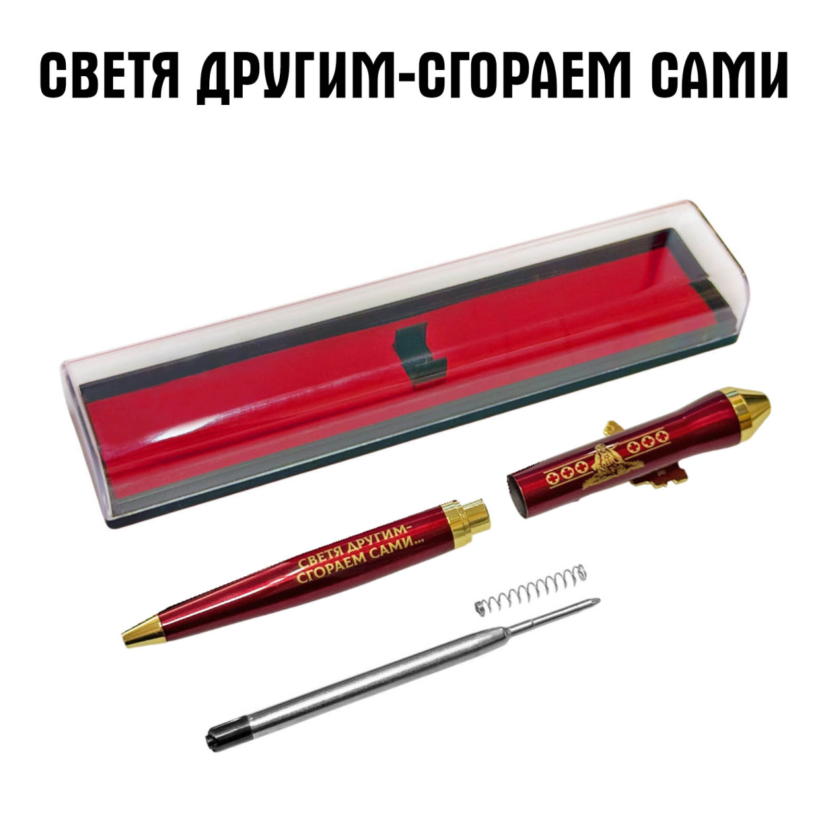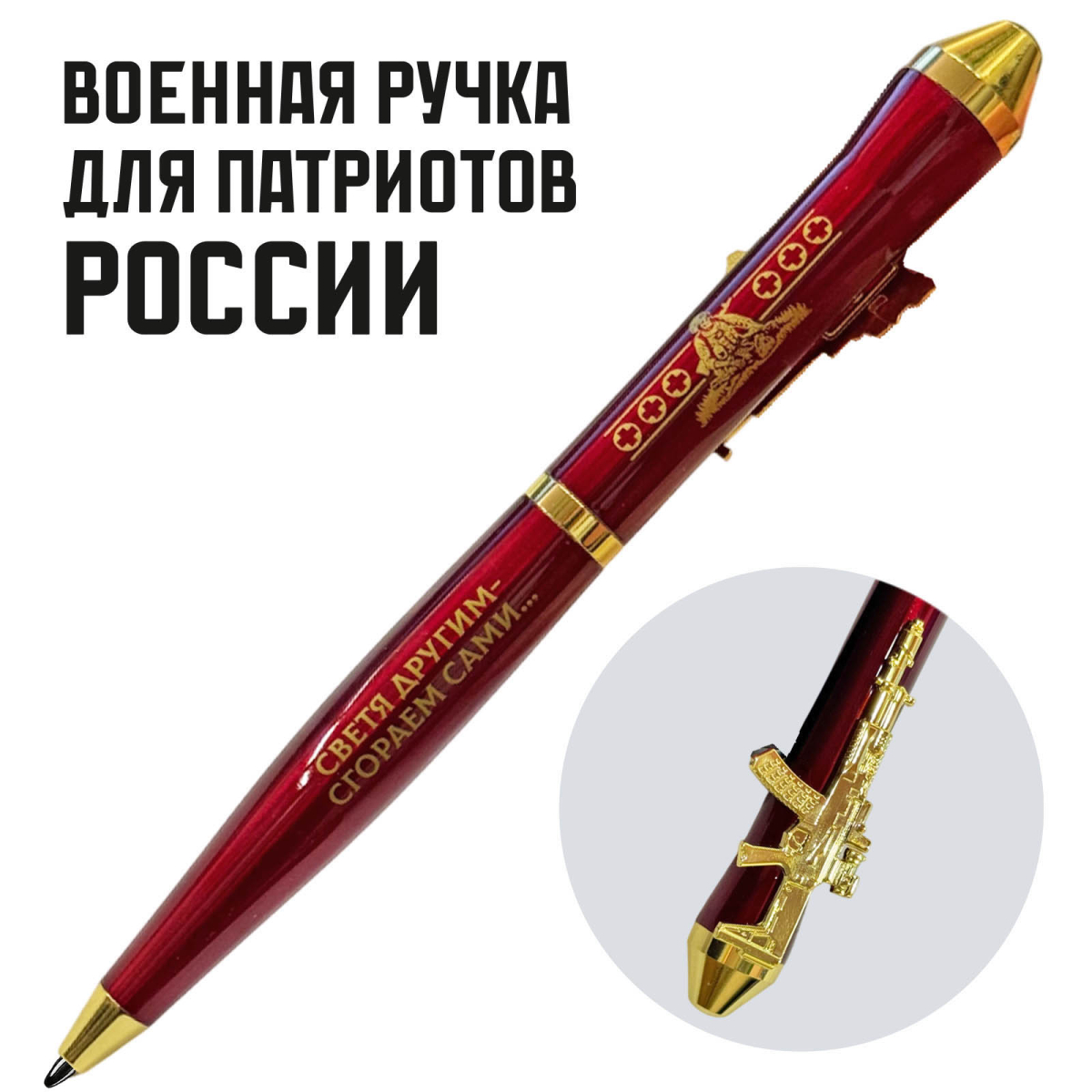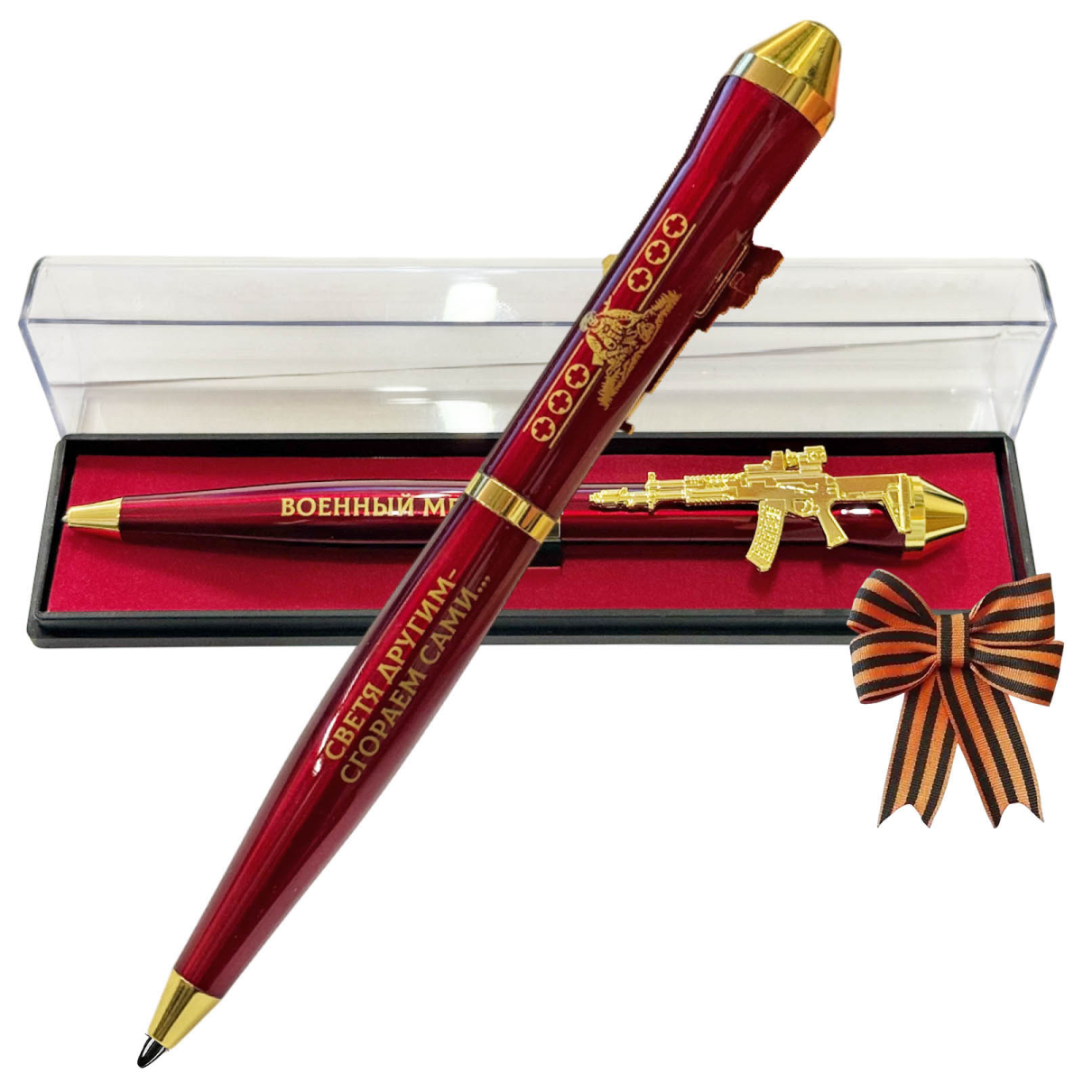 Подарочная ручка военный Медик "Светя другим – сгораем сами…" с автоматом в футляре