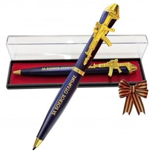 Подарочная ручка "За боевое отличие" – "Служу России" с автоматом в футляре