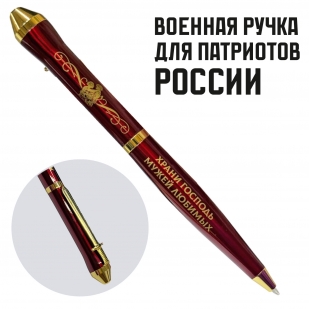Золотистые декоративные элементы, включая клипсу и торцевые вставки, придают ручке строгий, представительный вид. Тематика оформления – военная и патриотическая, что делает ручку отличным подарком военнослужащим, сотрудникам силовых структур, ветеранам, а также всем, кто дорожит историей и ценит символику силы государства.