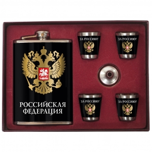 Подарочный набор Российская Федерация "За Россию!" с фляжкой и стопками