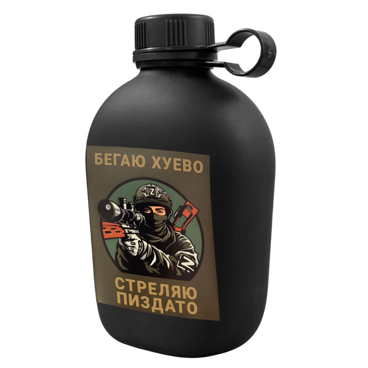 Купить походную флягу  "Бегаю х*ево, стреляю п*здато" можно в Военпро, с удобной доставкой по всей РФ.