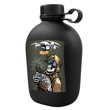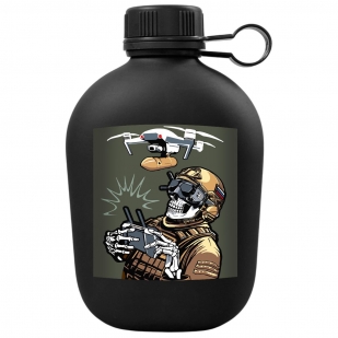Походная фляга "Дронармия" с виниловой наклейкой (1 л; алюминиевый сплав; 19.5х12х7 см)