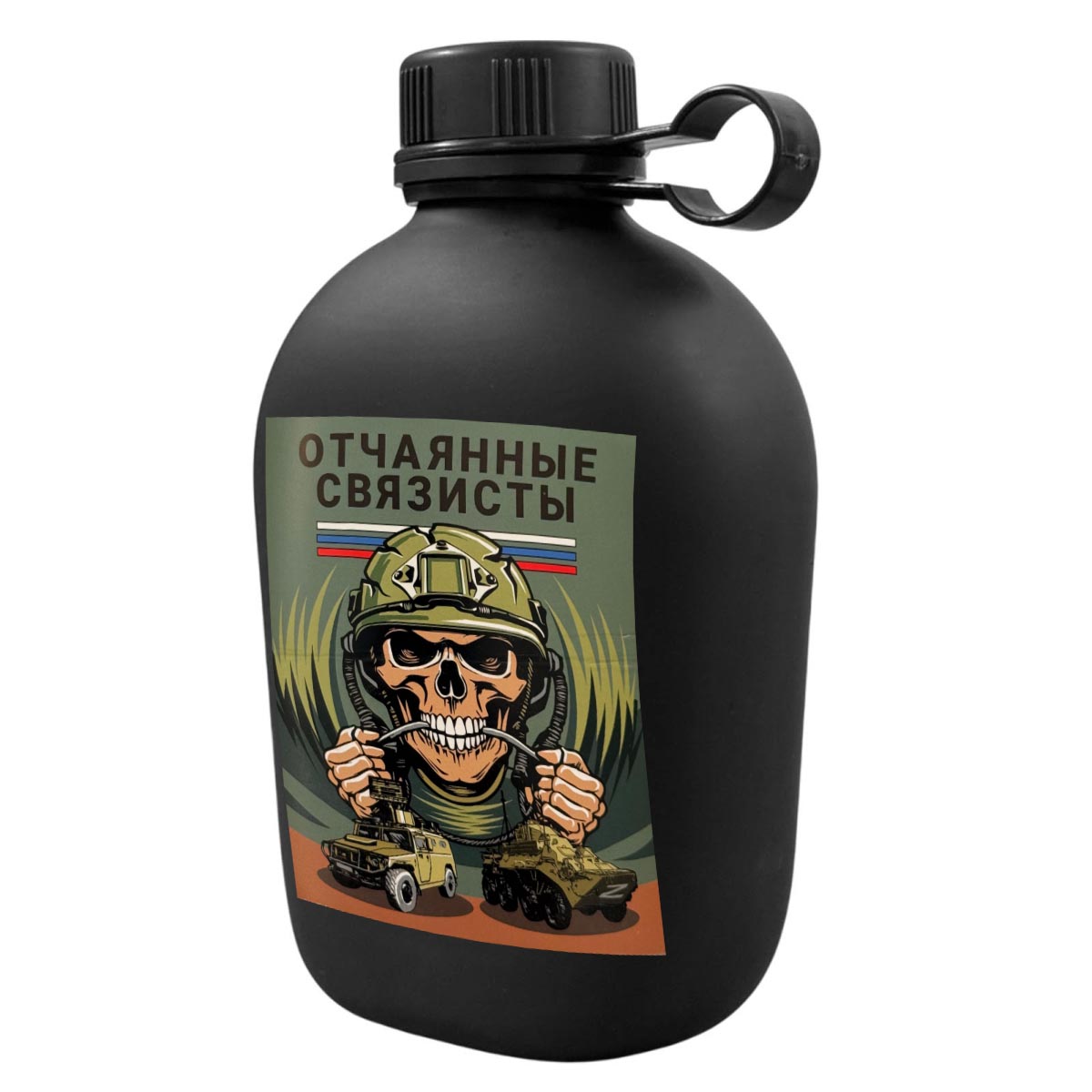 Походная фляга "Отчаянные связисты" с виниловой наклейкой (1 л, 19.5 х12 см)