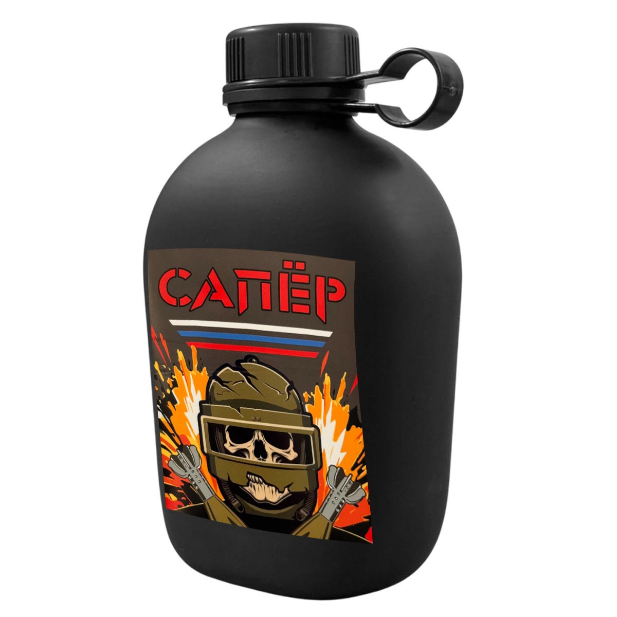 Походная фляга "Сапёр" с виниловой наклейкой (1 л, 19.5 х12 см)