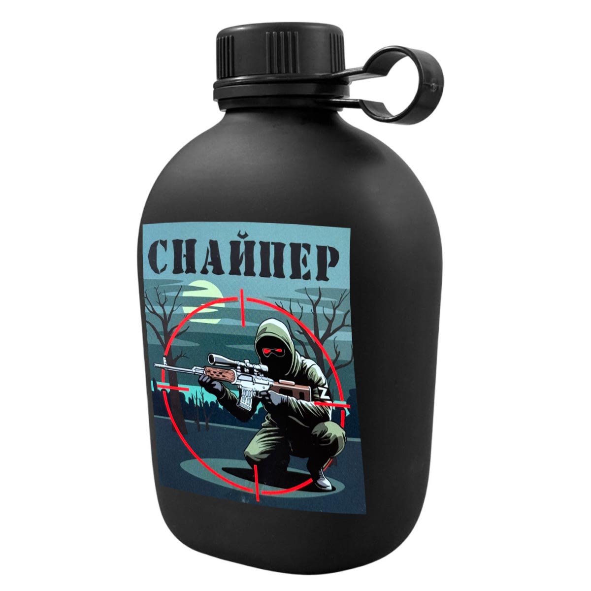 Походная фляга "Снайпер СВО" с виниловой наклейкой (1 л, 19.5 х12 см)